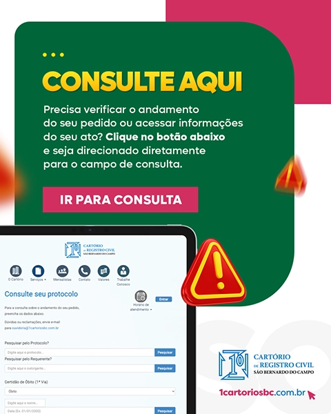Realize a busca de registros no 1º Cartório de SBC